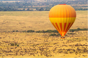 A sunrise balloon flight over the savannah offer a completely different perspective. Floating quietly above wildlife herds as the sun rises creates a memorable start to the day. Many flights end with a bush breakfast set up in the open plains.
